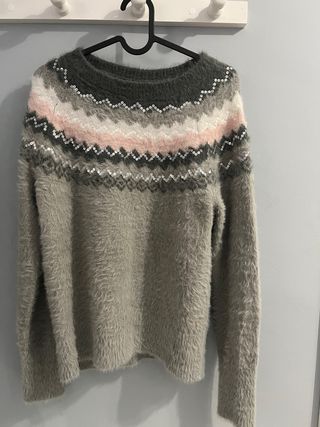 Jersey de tacto suave con diseño de grecas y lentejuelas. - Diseño de grecas en la parte superior. - Detalles de lentejuelas plateadas. - Tejido suave y agradable.