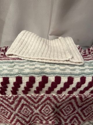Jersey largo de punto con un diseño geométrico y colorido. - Diseño de zig-zag en la parte superior. - Estampado étnico en la zona central. - Bajo con patrón de rombos.