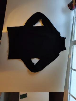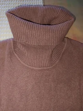 Jersey de punto con cuello alto. Mide pecho 45 cm. Hombros 33 vm, Largo 64 cm. - Manga larga. - Puños y bajo acanalados. - Detalle fruncido en los hombros.