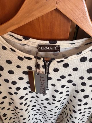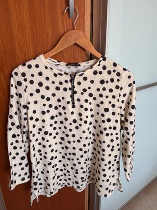 Jersey de manga larga con un divertido estampado de lunares. - Diseño de cuello redondo con cremallera. - Bajo con aberturas laterales.