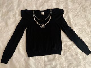 Jersey de punto fino con detalle de perlas. Creo que es de stradivarius pero le corte la etiqueta - Diseño con cuello alto. - Manga larga. - Adornado con pequeñas perlas.