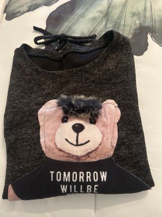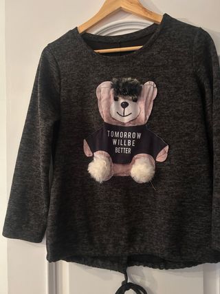 Jersey con un divertido diseño de oso. - Estampado de oso con detalles de pelo y pompones. - Mensaje Tomorrow Will Be Better en el pecho. - Tejido jaspeado.