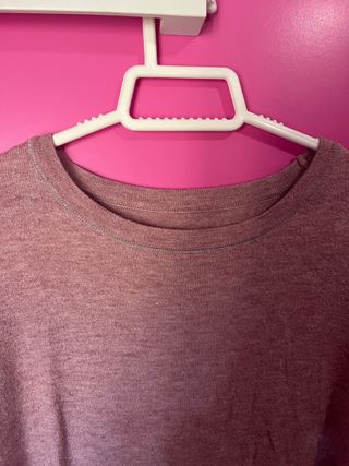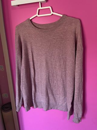 Jersey de mujer rosa clarito de cuello redondo y en buen estado.