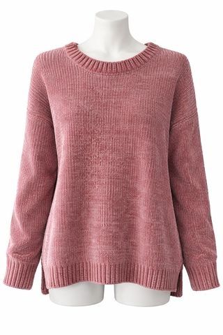 Jersey de punto fino en color rosa. Es una prenda cómoda y versátil. - Cuello redondo. - Manga larga.