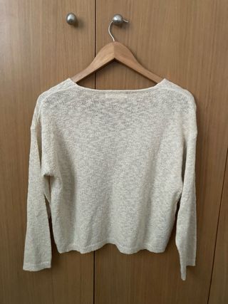 Jerséis de lana largo de Stradivarius talla S, color beige y cuello redondo. Es oversize.
