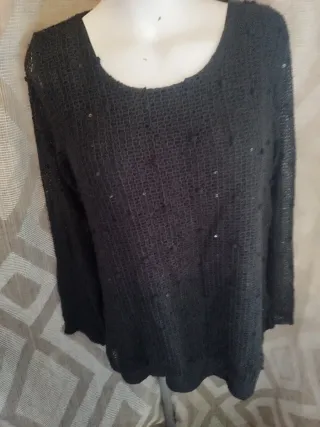 Jersey de punto en color negro con pequeños detalles brillantes. - Cuello en pico. - Manga larga. - Tejido ligero y cómodo.