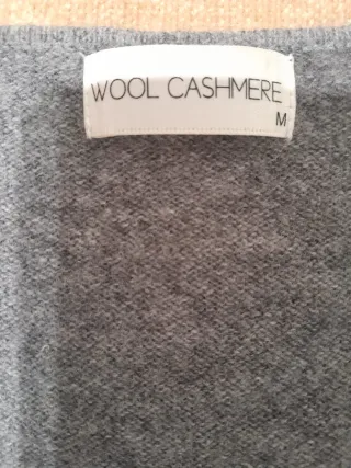 Jersey de cuello pico en color gris, ideal para cualquier ocasión. - Talla M, muy pequeña. - Tejido suave de lana y cashmere. - Diseño atemporal.