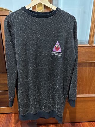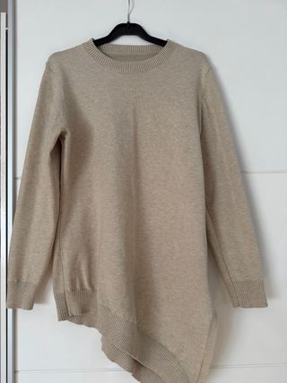 Jersey de manga larga con un diseño moderno y cómodo. Cuello redondo, Mangas raglán, Bajo asimétrico con doble capa, Puños y bajo acanalados. Ver medidas en las fotos. Muy poco uso
