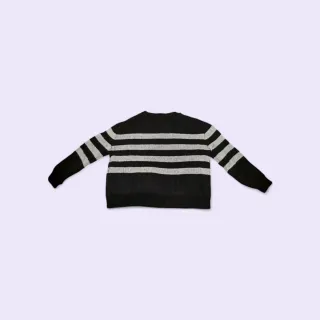 Jersey de punto con un diseño abstracto en contraste. Es una prenda cómoda y llamativa. - Diseño de líneas irregulares. - Cuello redondo. - Puños y bajo acanalados.