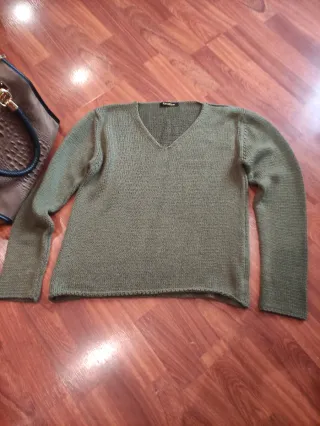 Jersey mujer pico, color caqui, talla G ( de axila a axila 50cm), es ideal para primavera/verano.
