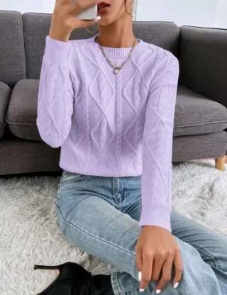 Jersey de punto calado en color rosa. Un básico versátil para tu armario. - Diseño de punto calado con ondas. - Manga larga. - Bajo con canalé.
