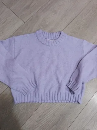Jersey de Stradivarius en color morado. Es un modelo de corte cropped con cuello en pico. - Manga larga. - Tejido suave.