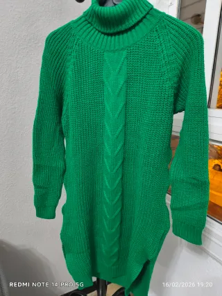 Jersey de punto grueso con cuello alto. - Color verde lima vibrante. - Tejido suave y cálido. - Diseño moderno y versátil.