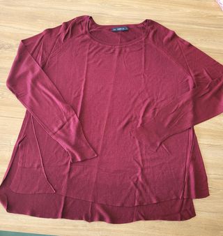 Jersey granate de manga larga con un diseño moderno y cómodo. Cuello redondo, Mangas raglán, Bajo asimétrico con doble capa, Puños y bajo acanalados. Ver medidas en las fotos. Muy poco uso
