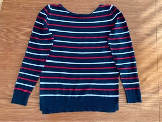 Jersey azul a rallas mujer, tejido fino, color azul klein y blanco, talla XS, en muy buen estado. De Mango.