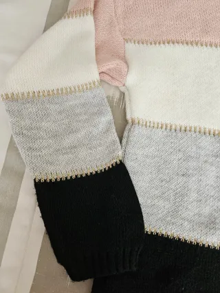 Jersey de punto tricolor de la marca Sfera. Presenta un diseño de bloques de color con diferentes texturas. - Manga larga. - Cuello redondo. - Diseño de rayas horizontales