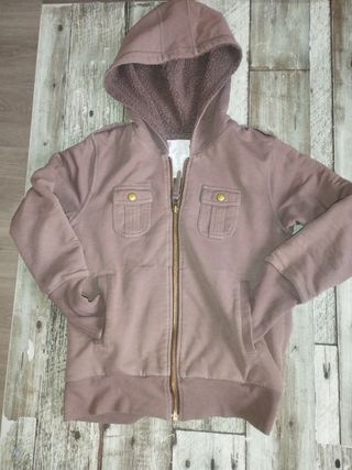 Jersey con capucha de color marrón. Tiene un forro interior suave y cremallera frontal. - Bolsillos delanteros con solapa y botón. - Puños y bajo elásticos. - Capucha forrada. Talla 10 años