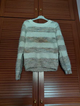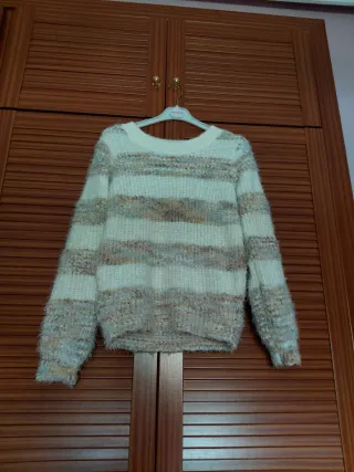 Jersey de pelo con un diseño de rayas multicolor. Es una prenda suave y cálida. - Diseño de rayas horizontales. - Tacto muy agradable. -Es una S pero da hasta la M sin problema