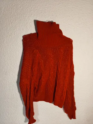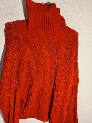 Vendo jersey rojo de punto, con cuello alto y diseño de trenzado + hilo brillante que le da un toque elegante y diferente. ❤️ Color rojo intenso (muy favorecedor) ✨ Detalle con brillo sutil (queda precioso con luz) 🧶 Punto gordito, calentito y cómodo 👌 Estilo oversize / ancho (queda genial con vaqueros o leggings) ❄️ Ideal para otoño-invierno, cenas, navidad o salir 📌 Estado: muy buen estado, sin manchas ni rotos. Se nota que es un jersey de buena calidad y queda espectacular puesto. 📦 Hago envíos por Wallapop/Vinted 💬 Cualquier duda o más fotos, pregúntame.