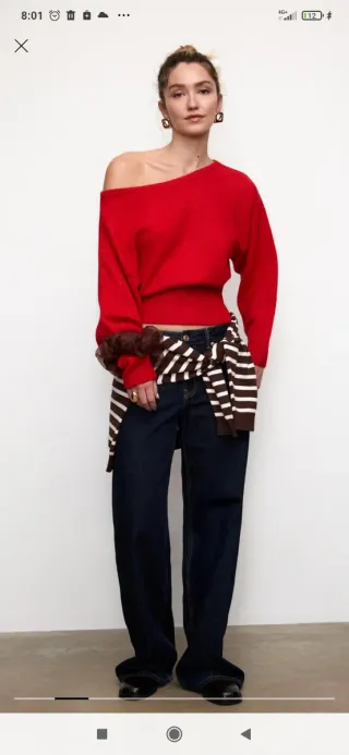Jersey Stradivarius cuello barco rojo