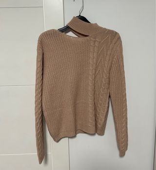 Jersey de manga larga con un diseño de punto trenzado en un lado y punto liso en el otro. Presenta un corte abierto en la zona de los hombros y cuello alto. - Diseño de punto trenzado. - Corte abierto en hombros. - Cuello alto.