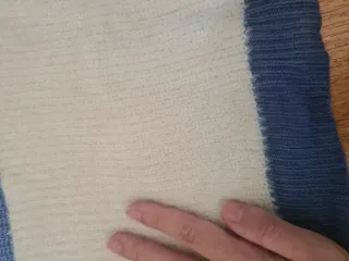 Jersey azul y blanco con flecos