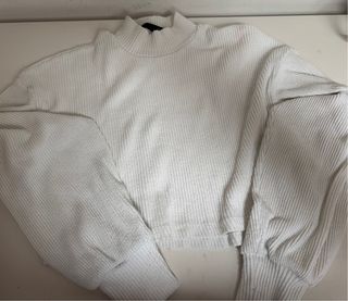 Jersey corto de canalé con cuello - Manga larga abullonada. - Puños elásticos.