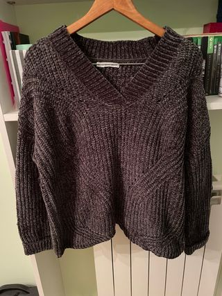 Jersey de punto grueso con cuello en V. Su textura suave y diseño moderno lo hacen ideal para cualquier ocasión. - Tejido de chenilla. - Diseño de canalé. - Corte holgado. - NUEVO