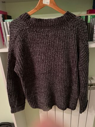 Jersey Bershka gris canalé manga larga