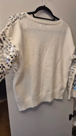 Jersey blaco lentejuelas plateadas