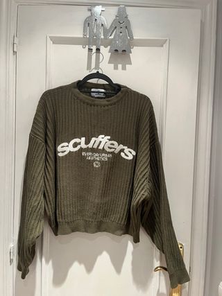 Jersey con tejido acanalado y diseño moderno. - Color verde oliva. - Talla m - Detalle de texto scuffers en blanco en el pecho.