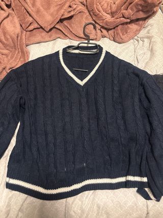 Jersey azul y blanco trenzado