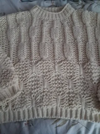 Jersey beige y blanco claros diferentes texturas alguna borreguillo y punto muy calentito es largo nuevo sin estrenar talla L