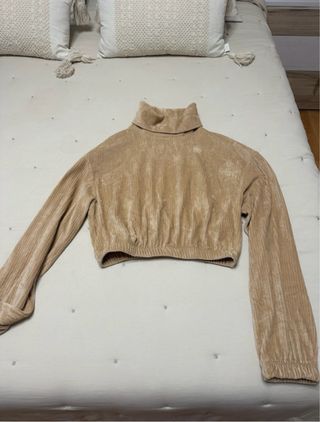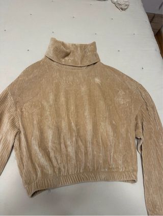 Jersey Bershka de cuello alto en color beige. Tiene un diseño cropped y manga larga. - Tejido de pana. - Cintura elástica.