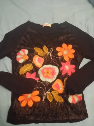 Jersey de punto suave con un delicado bordado floral cremallera oculta. - Diseño de flores y tallos bordados. - Manga larga. - Medidas 48cm de axila a axila y 50cm de largo.