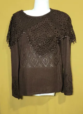 Jersey de punto, talla única S-M, color marrón