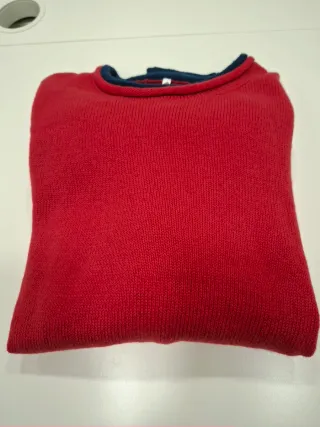 Jersey de punto en color rojo. - Cuello redondo. - Puños y bajo en azul Lo vendo porque me queda pequeño