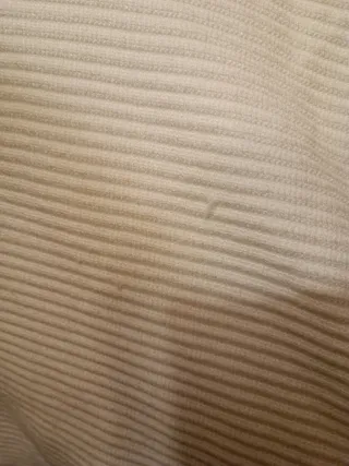 Jersey de punto con un diseño de ondas verticales y escote en pico. - Tejido texturizado. - Manga larga. - Corte recto. - Tono gris perla o blanco roto. Muy bien cuidado. Composición: 81 CO 17 PA 2 EA