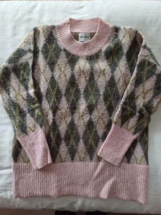 Jersey de punto con un bonito estampado inspirado en el estilo nórdico. Ideal para añadir un toque acogedor a tu vestuario. - Diseño de cuello redondo. - Mangas largas. - Tejido suave y cálido.