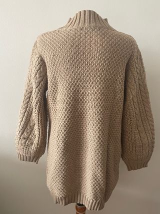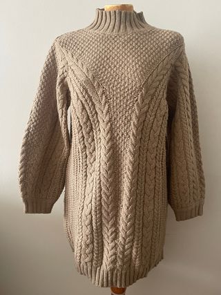 Jersey largo de punto con cuello alto y diseño de trenzas. hombros 40 x axilas 50 x mangas 54,espalda 74cm - Tejido grueso y cálido. - Mangas largas. - Largo hasta medio muslo.