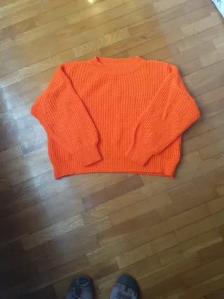 Jersey de punto grueso en un llamativo color naranja fluor. Su diseño es moderno y cómodo. - Tejido de canalé. - Cuello redondo. - Mangas largas.
