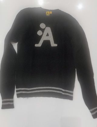 Jersey de lana A-Style en color negro con detalles de franjas blanco. Presenta el logo de la marca en la parte delantera. - Cuello redondo. - Manga larga. - Tejido de lana. NOTA: es una talla S pero por un lavado erróneo encogió; muy calentito, ideal para un niñ@. Dejo foto con medidas.