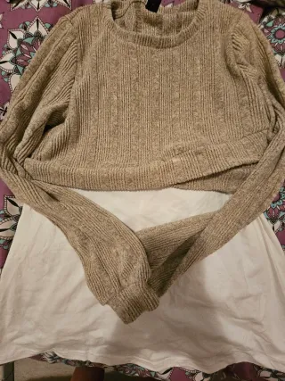 Se regala si la entrega es por zona Betanzos o Coruña. Si se quiere envío, el precio es de 1€. Jersey premamá fino. De la marca H&M. Talla M. 83% poliéster, 12% viscosa, 5% elastano. Posibilidad de descuento por la compra de más productos del perfil.