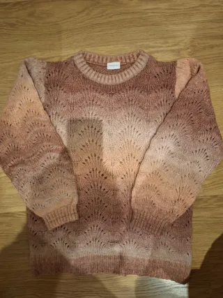 Jersey de punto con diseño degradado en tonos rosados y melocotón. Ideal para el embarazo. - Tejido suave y confortable. - Diseño con calados. - Mangas largas abullonadas.
