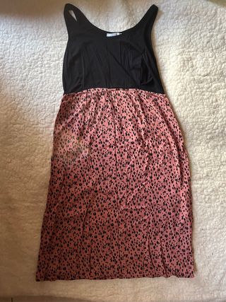 Vestido premamá con dos piezas. Muy cómodo. Sirve tanto para verano como para otoño/invierno, ya que lleva jersey de manga larga a juego y se puede combinar con medias o leggins. Muy poco usado. También sirve para una S