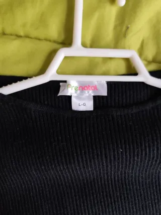 Pack de dos jerséis de Kiabi, uno negro y otro verde, diseñados para premamá. - Jersey negro con textura. - Jersey verde de canalé. Rstan en bien estado, sin pelotillas. En las fotos parece que el color esta gastado, pero estan bien. Comprando esto y los pantalones hago precio.