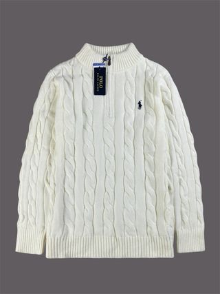 Jersey de punto trenzado con media cremallera. - Diseño clásico de cable knit. - Logo de Ralph Lauren bordado en el pecho. - Cuello alto acanalado. - Puños y bajo elásticos.