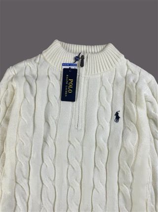 Jersey de punto trenzado en color blanco. Un clásico de Polo Ralph Lauren. - Diseño de punto trenzado. - Cuello redondo. - Logo del jugador de polo bordado en el pecho. Fast shipping open to offer