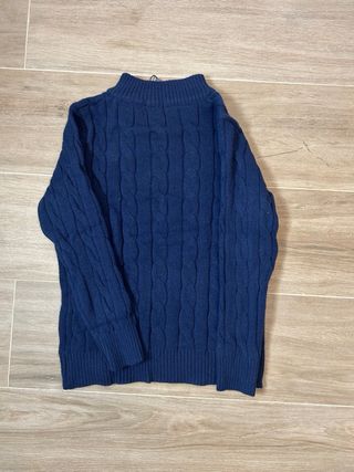 Jersey de punto trenzado en color azul. - Diseño clásico con cuello redondo. - Logo de la marca bordado en el pecho. - Puños y bajo acanalados.