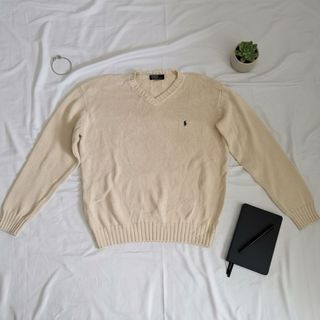 Jersey vintage Ralph Lauren 🐎 en tono beige crema, súper combinable y elegante, perfecto para looks minimal y universitarios 🤍. Tejido de punto muy agradable y calentito, ideal para otoño/invierno. Corte clásico con cuello pico, puños y bajos de canalé, queda genial tanto con vaqueros como con pantalón de vestir 👖. Logo bordado en el pecho y detalles cuidados. En muy buen estado, sin desperfectos visibles y listo para estrenar de nuevo ✨. Envío rápido en 24h📦💨